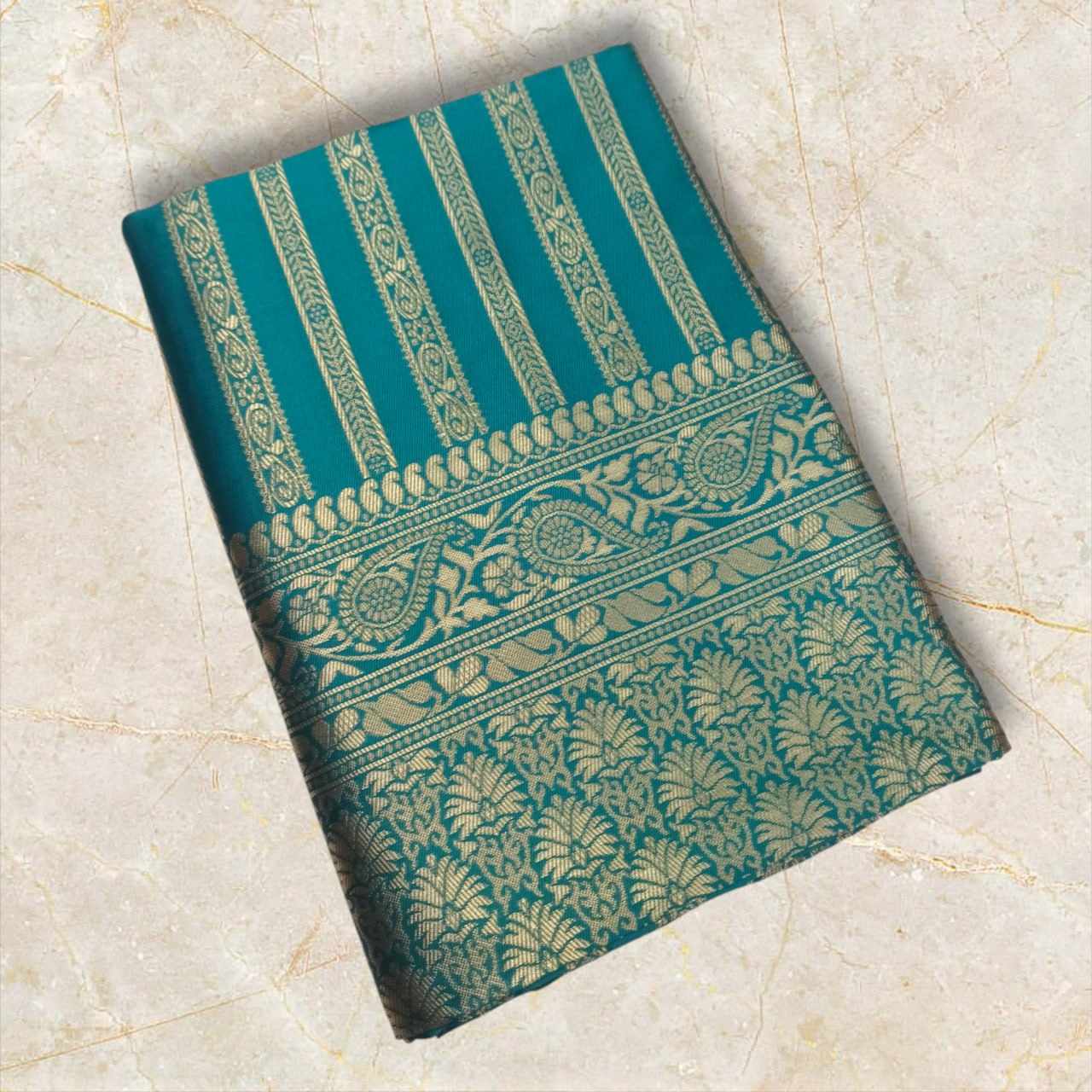 | Name : | MF 1920 PETROL BLUE BANARASI SOFT LICHI SILK SAREE |